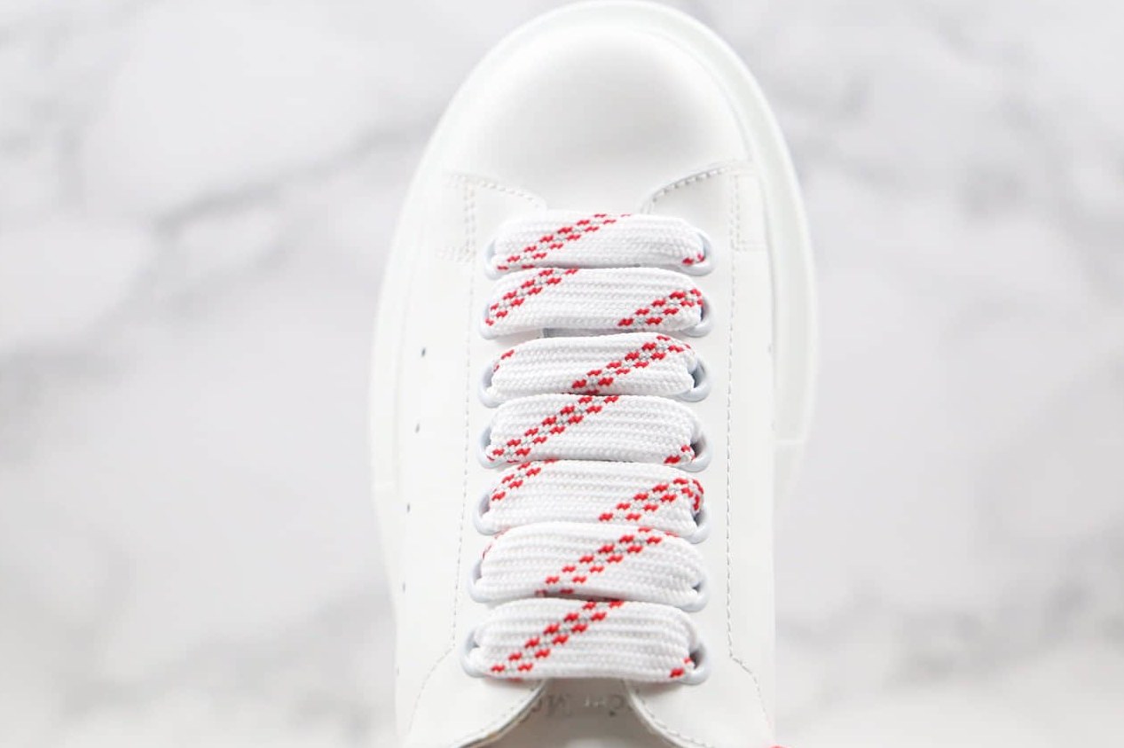 – Signature design elements: The Alexander McQueen Oversized White Black Red Outline features the brand’s iconic detailing, including the masterfully embroidered logo and the renowned skull motif. These distinctive elements bring a touch of luxury and add an edgy appeal to your ensemble.
