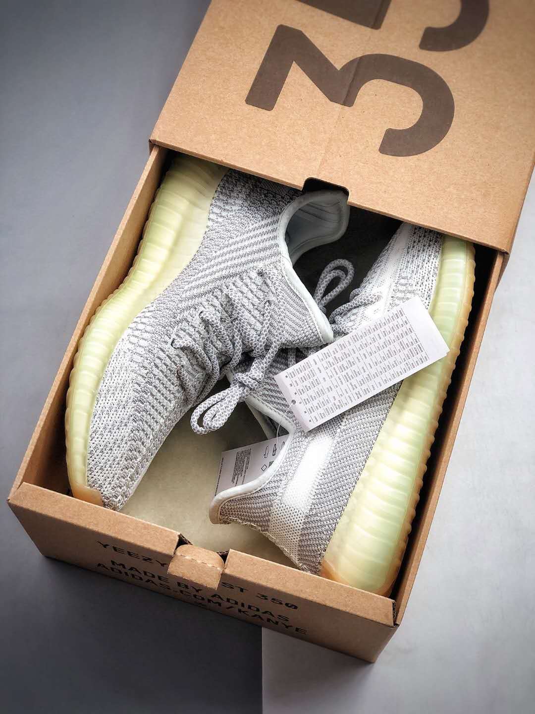 The Adidas Yeezy Boost 350 V2 ‘Yeshaya Non-Reflective’ FX4348 features an eye-catching color scheme that is both timeless and contemporary. The upper is crafted from a breathable, Primeknit material which hugs your feet comfortably while providing excellent ventilation. The neutral shades of white and light grey are perfectly accented by a translucent stripe on the lateral side, adding a unique touch to the overall design. A durable Boost midsole ensures superior cushioning and support, allowing you to stay on your feet all day long in utmost comfort. Completed with a rubber outsole for added traction and stability, these Yeezy’s are perfect for any occasion.