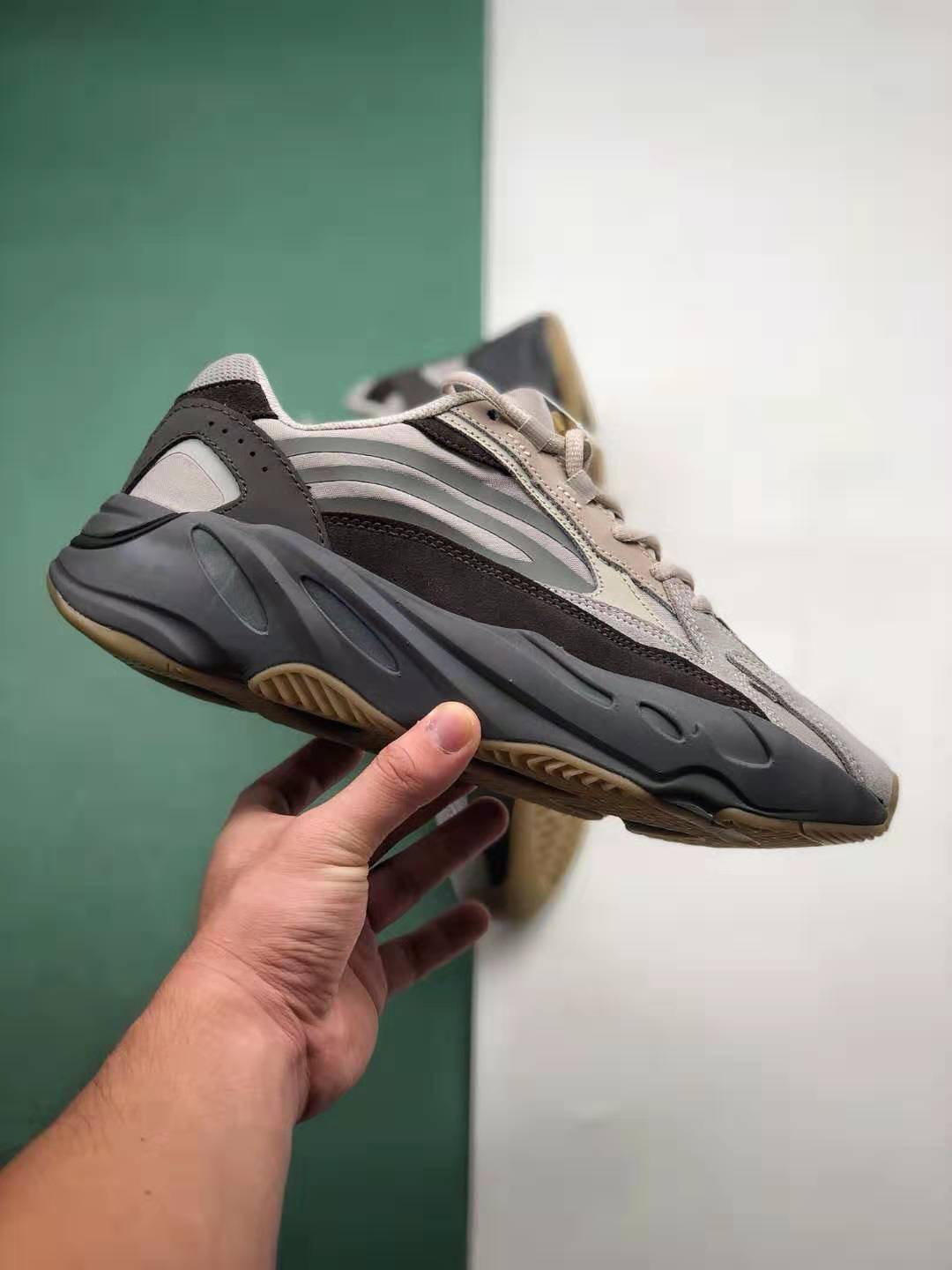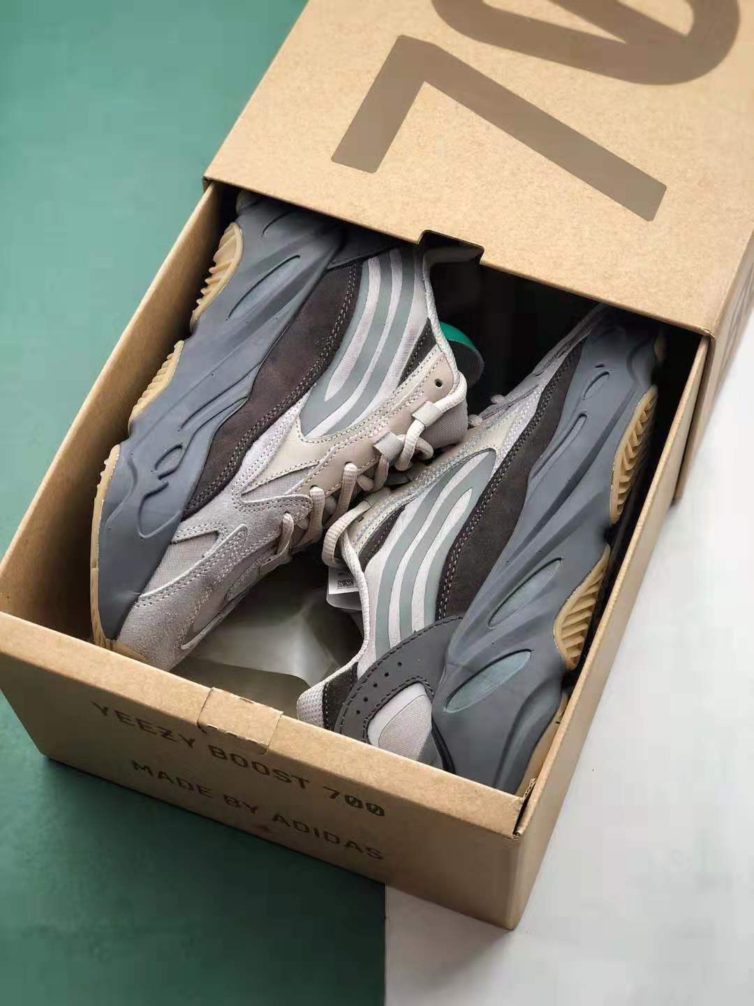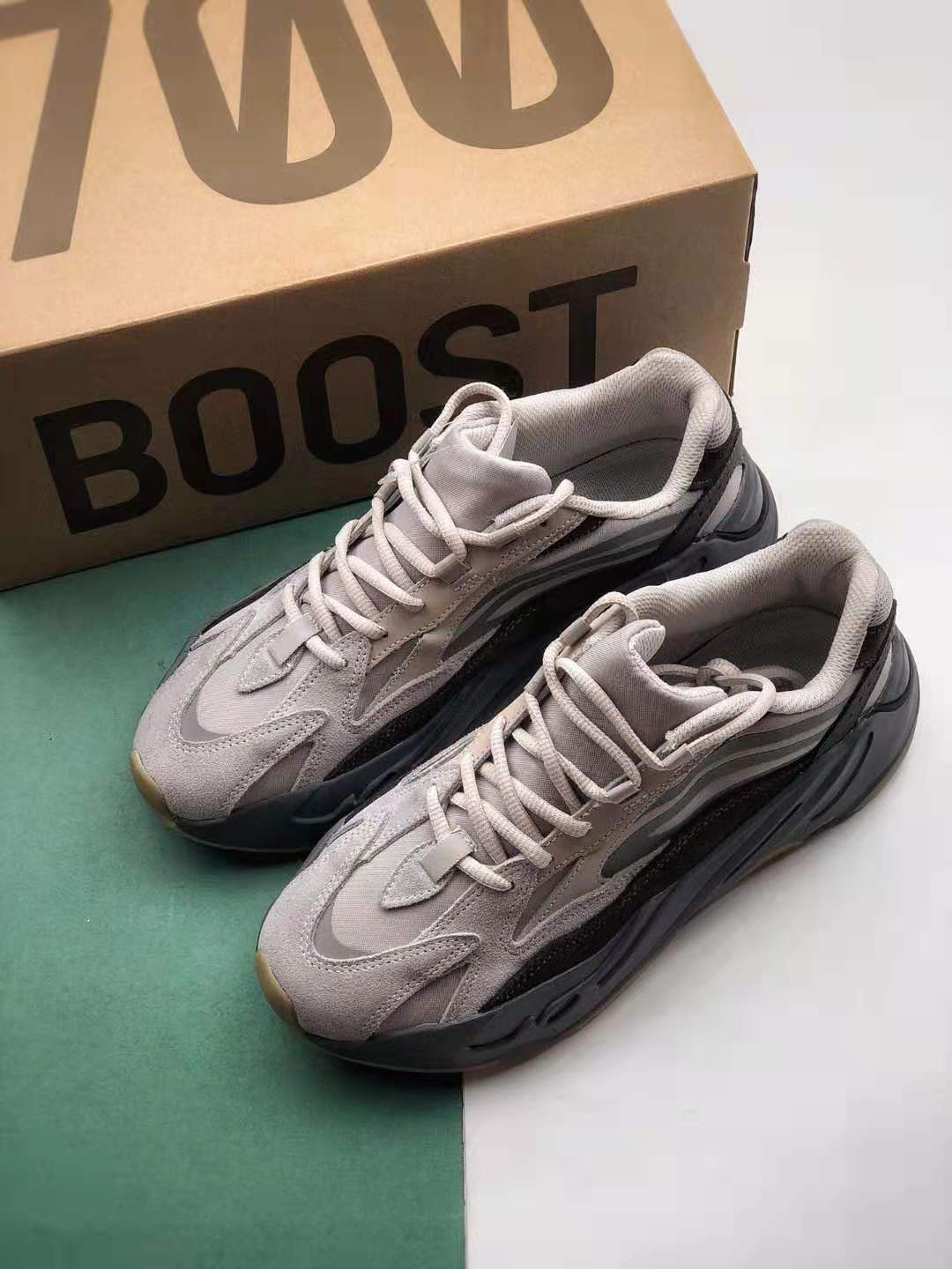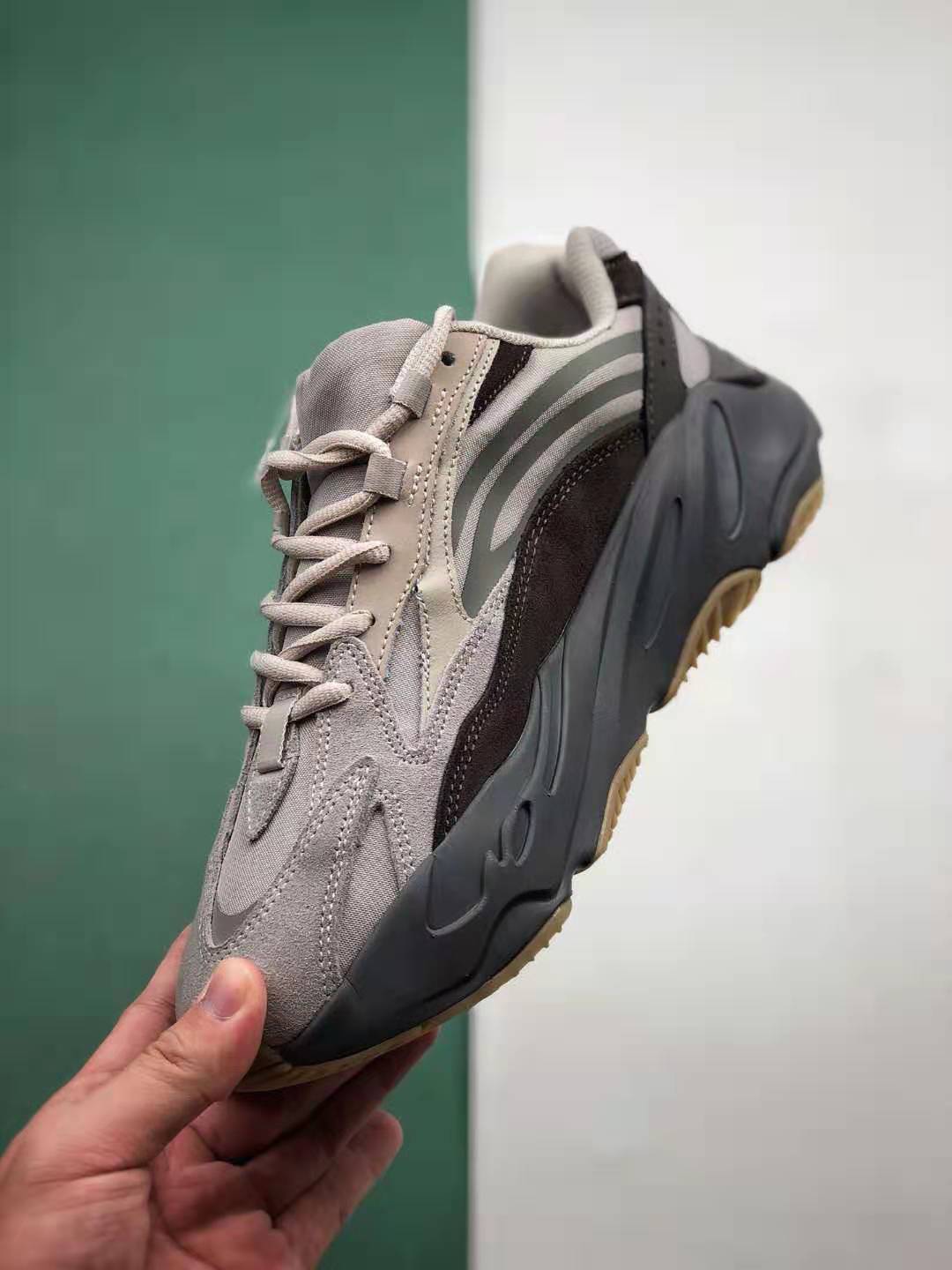 The Adidas Yeezy Boost 700 V2 ‘Tephra’ FU7914 showcases an eye-catching color combination of earthy tones, including shades of grey and brown, which lend a timeless appeal to the shoe. The upper is constructed with premium-quality materials that ensure durability and long-lasting wear. Additionally, the reflective details on the shoe create a striking visual effect, especially in low-light environments.